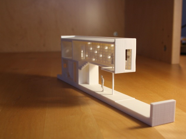 DOWNLOADSummaryA 1:100 concept model to demonstrate the space, windows and shelving in the 'library' for an extension to an existing house. Modelled in archicad and printed on a Makerbot Replicator 2 with Makerware, the settings used were quite high to try to maximise the resolution of the cabinetwork.