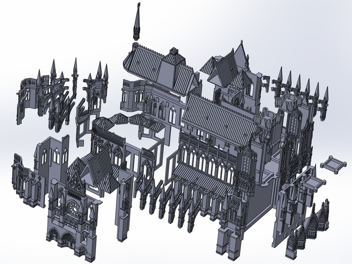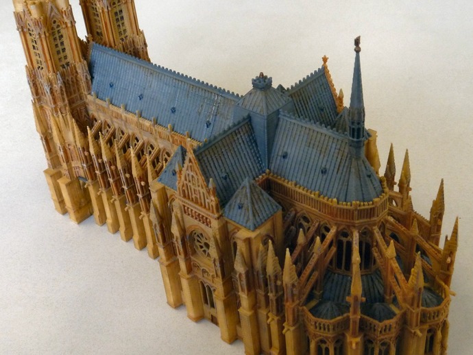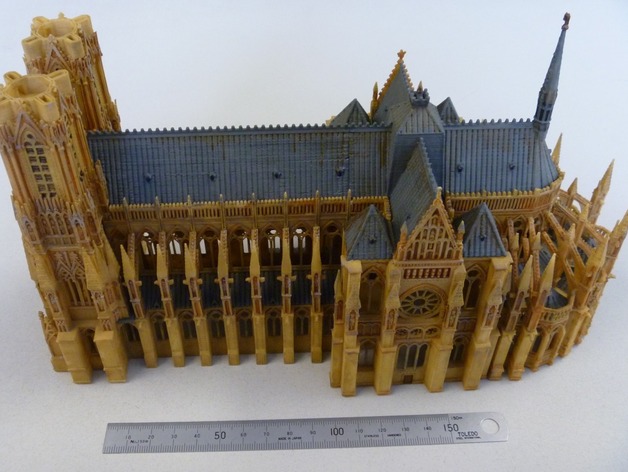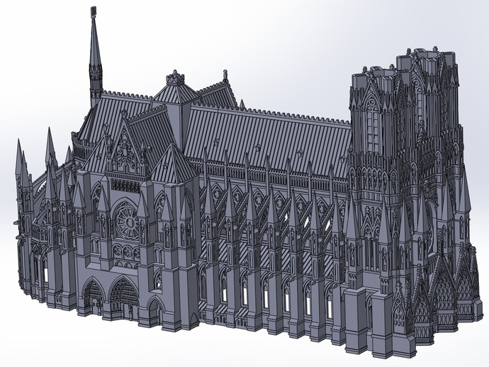 DOWNLOADSummaryKitset of Notre-Dame de Reims. Designed to be printed on UP! Plus. 62 pieces. Drawn in Solidworks 2012. All parts drawn from scratch referencing L'Instant Durable paper model, internet photos & books.