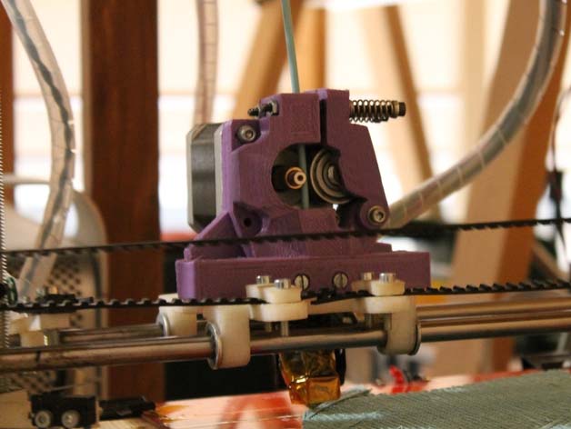 Instructions The extruder is printed in PLA at 60% infill to gain strenght with support material. All the parts are printed in the position I am realeasing the files here. Raft or brim can be a good idea to print the part that has a massive base to hold the motor and to be more stable. All the metal and electronic parts are the same I mounted on my previous Greg's Wade extruder except for the springs that I prefered a bit stronger. You will need to cut and file a bit the idler holder on the extruder main body. I am giving 2 versions of the main body extruder: one has round holes the other oval. The one with round holes is really precise on the stepper motor and you could have to remove very well some raft material to have a good fit. With the oval holes you can move a bit the screws to find your perfect fit even if the part cames out not so precise. The idler is a curved version of the Greg's Wade with rectification angle to have the screws pressure on a vertical plane and it uses 608ZZ bearing.
