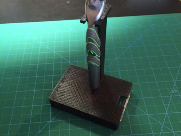 Post-Printing Took a while to remove supports and to file and clean everything to make sure that the refill pack would fit and be able to be pulled out smoothly, and to get the razor to fit the way I wanted it to (filed a small indentation in the back to get the razor to sit own in the holder better. Didn't feel like changing the drawing and taking another 2 1/2 to 3 hours to print another one). With a little fiddling it works great for my needs.