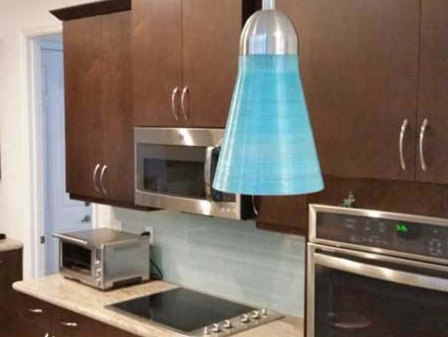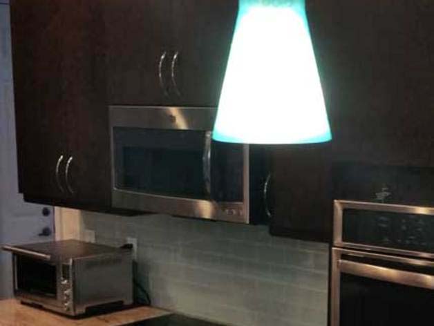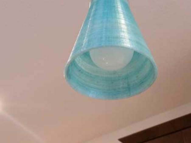 DOWNLOADSummaryThis is a shade printed to fit a particular Westinghouse Mini-Pendant light commonly available in home improvement stores and Amazon (link below). You can put a smallish LED bulb in the fixture. Don't use an incandescent bulb because it will be too hot, of course. It was printed with clear PLA on a BQ Hephestos Prusa i3 using a PRINTinZ Zebra Plate. The blue color comes from running the filament through a Staz-on Teal Blue ink pad (link below). I drilled a 1/8" hole through the pad and it's plastic case. The filament wicks the ink along with it and dries before it gets to the extruder. (I printed some little struts to hold the pad in place on my Prusa.) I got this idea from Dovid Teitelbaum on the Facebook 3D Printing Group, who did something similar with a sharpie.