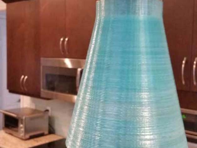 The outer wall of the shade is a straight cone, but the inner wall has some waves to it to create some variation in the opacity. It took 11 hours to print at 0.2mm layer height, and guess what, my wife wants me to change it so the inner wall is straight too. eleven....hours....later....ugh ;-)