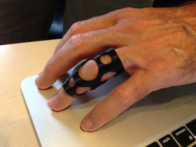 SummaryUse the FingerCast to immobilize the finger joint/knuckle. Natural bend helps with pain suffered from a sprain. Scale to obtain best fit. Best results with ABS but PLA should work as well. No supports needed. Print at 100% fill.